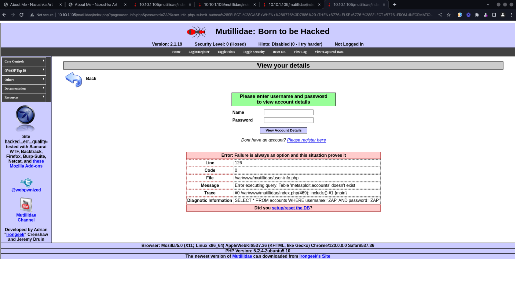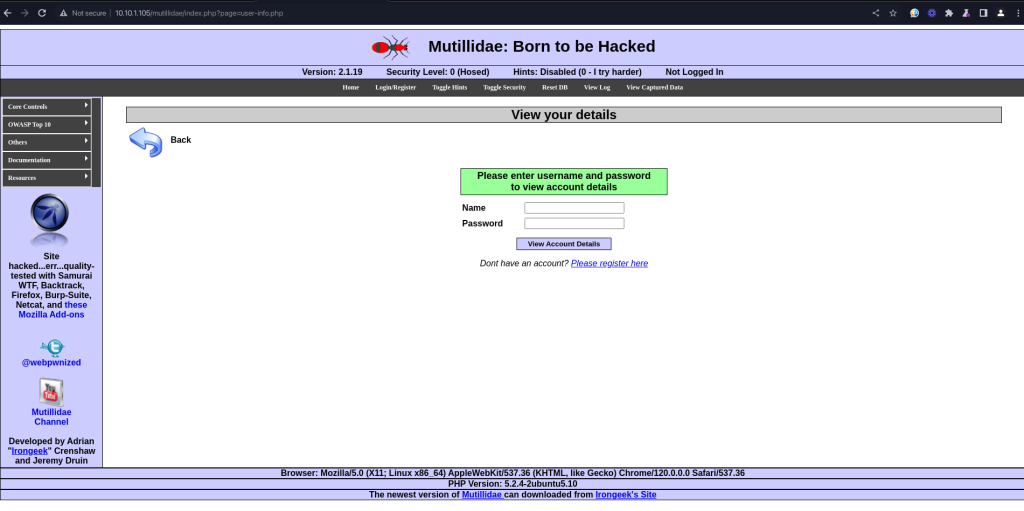 As we dive into the practical applications of Zed Attack Proxy (ZAP), our focus will shift to a hands-on exploration of vulnerabilities within a controlled environment. For this purpose, we will utilize Metasploitable2, an intentionally vulnerable virtual machine widely used for training and educational purposes in the field of cybersecurity. Specifically, our attention will be centred on the ‘Mutillidae’ section of Metasploitable2.