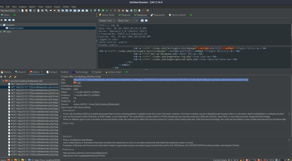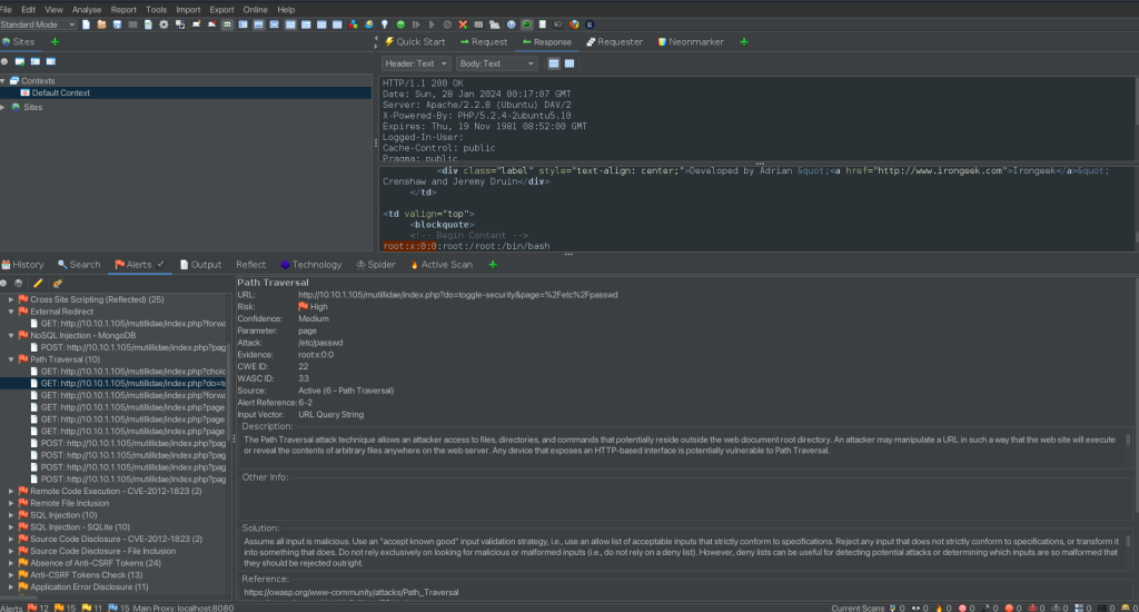 In this practical guide, we will walk through the process of scanning Mutillidae using ZAP. Our goal is to uncover the potential vulnerabilities that reside within this application. This exercise is not just about finding weaknesses but also about understanding the nature of these vulnerabilities. By doing so, we aim to gain a deeper insight into how such vulnerabilities can be exploited and, more importantly, how they can be mitigated in real-world scenarios.