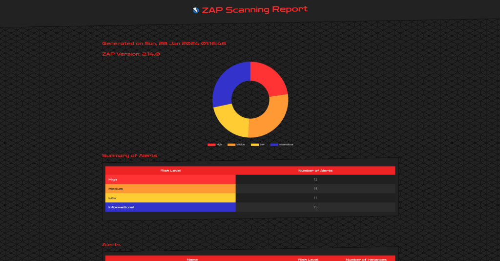 - Description and Details: Each alert includes a description and often suggestions for remediation. This information is vital for understanding the nature of the vulnerability and how it can be mitigated.